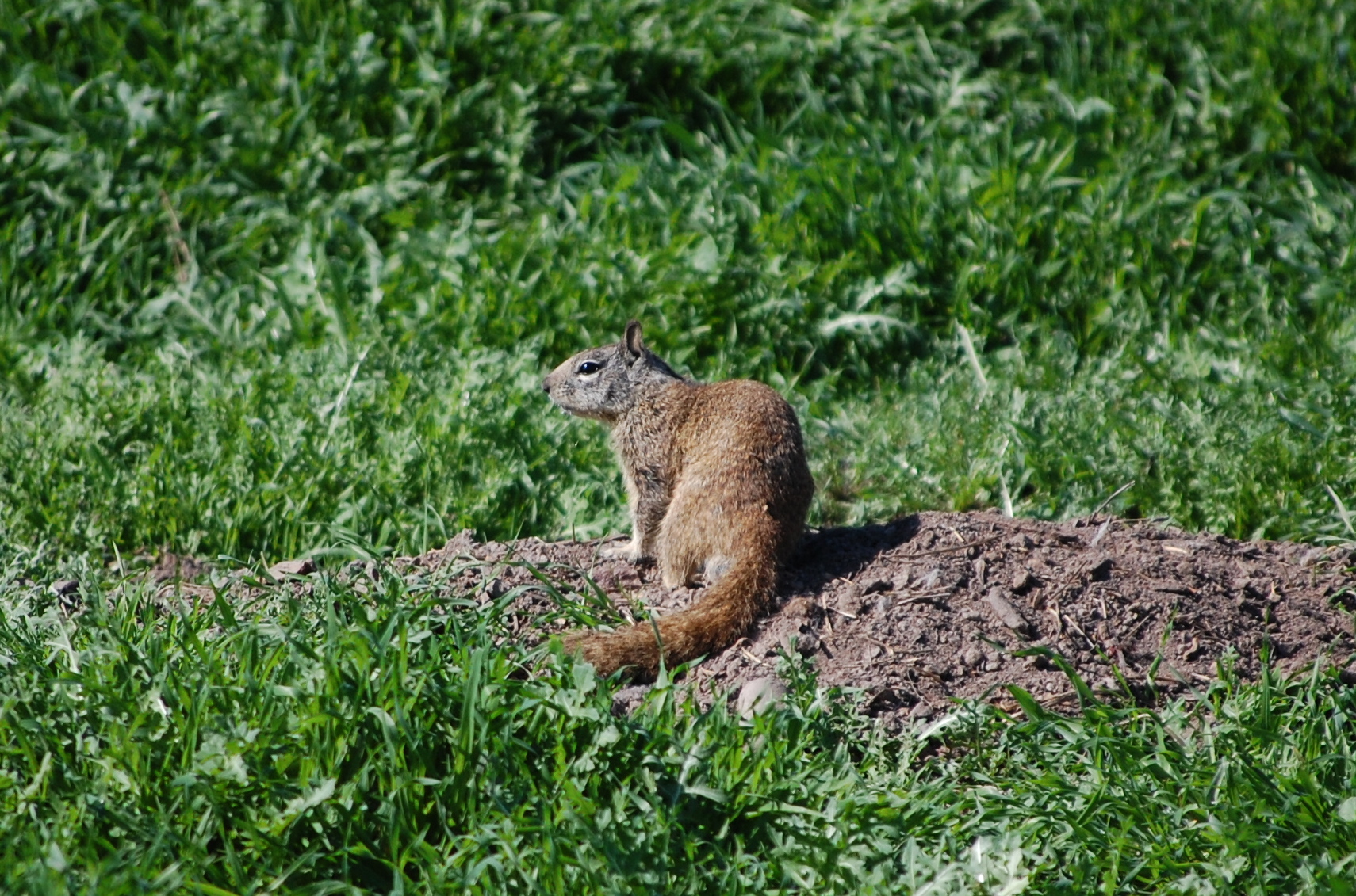 Notice I said that was going to be my last Floridian mammal. I’ve had the privilege of working in other parts of the country as well, including California which is the home of the California ground squirrel (Otospermophilus beecheyi). The genus name is a combination of the Greek otos meaning “ear”, spermatos meaning “seed”, and phileo meaning “love”. This is due to their preference for eating seeds and their ears being more predominate than those of the genus Spermophilus. Considered by some as a pest due to their tendency to feed on ornamental plants, ground squirrels live in burrows, much like gopher tortoises and burrowing owls. One of the most interesting aspects of the ground squirrel is its defense against predators, namely rattlesnakes. They exhibit a behavior known as “tail-waving”, where they will swish their tails back and forth rapidly, creating a dense heat signature. The rattlesnake, which relies on heat sensing to find their prey, will mistake this signature as being produced by something larger and faster and will often times not pursue it. They are also very vigilant, standing upright and scanning the landscape for potential threats.