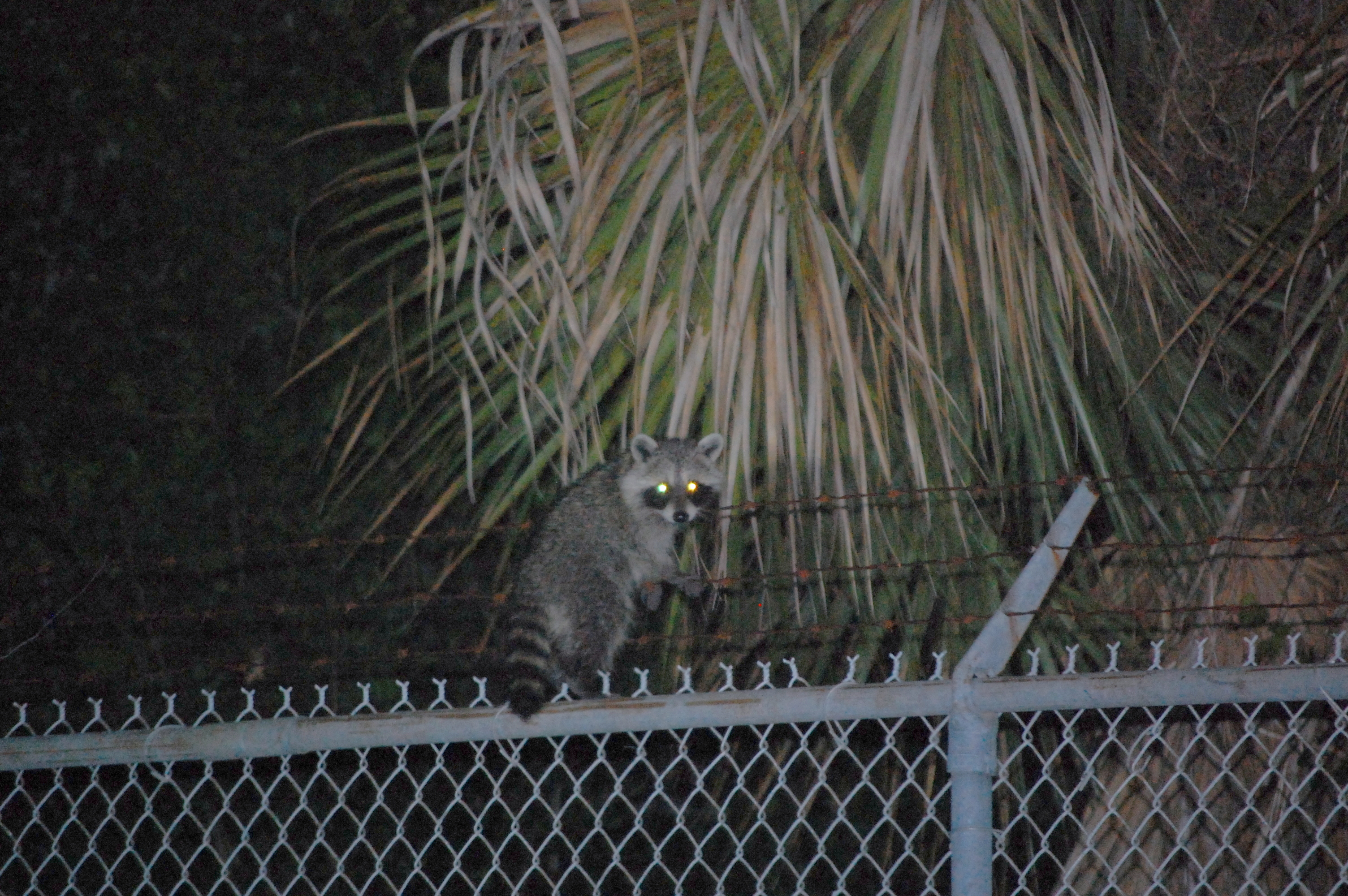 But there is more to the raccoon than just its name. One of the things that makes them so unique is that they have a fully functional thumb. While not opposable, it does help increase grip. Not only does this allow them to open containers, it also helps them grip objects, making them great climbers. The photos aren’t great because they were taken at night. But I have seen first hand how these creatures can very easily scale a fence. In addition to being able to climb up the fence, their strong back feet allow them to climb down the fence just as easily. I also saw one grab and unhook the barbed wire from the outrigger.