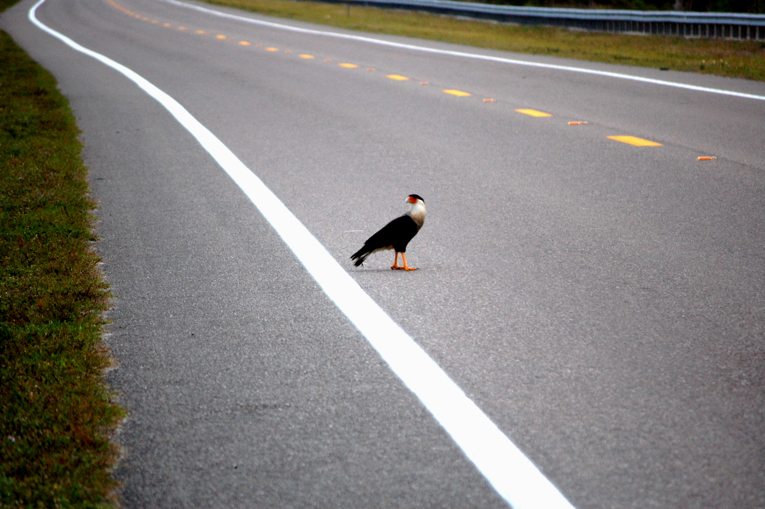 Although, as mentioned, this next bird is kind of in the gray area when it comes to identifying it as a bird of prey, it is an easy transition from the bald eagle for a couple of reasons. For one, in addition to its small live prey, it also feeds on carrion. Additionally, it is also known as the “Mexican eagle”. That would be the Crested Caracara (Caracara cheriway). If you’ve read through some of my other posts, you’ve probably noticed one of the things I love to do is learn where scientific names come from. This one was a little difficult. The best I could find is that caracara is a Tupi name for “noise mangler” or “shrieker” likely due to its loud call (third one down in the link). Apparently cheriway is just the name that the indigenous people of Venezuela used to call them.
