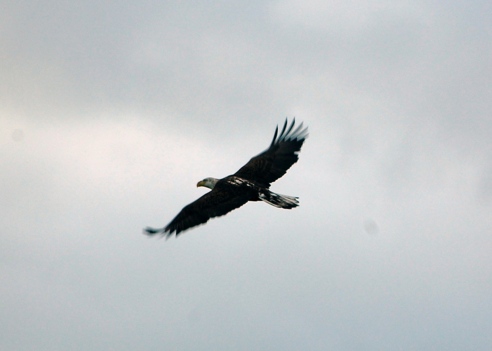 What better raptor to start with than our country’s national symbol, the bald eagle (Haliaeetus leucocephalus). While the bald eagle is clearly not bald by the modern meaning of the word, it gets its name from the more ancient term “balde” which meant white. The genus is a combination of the Greek hali meaning “sea” and aetos meaning “eagle”. The species name is a reference to the white head, being a combination of the Greek leukos and kaphelos which together mean “white headed”. Juvenile bald eagles don’t have the white head or the white tail at first. In fact, it is well into adulthood before they really get their adult plumage, with the full white occurring in their fifth year of life. The last photo shows a young eagle in the late stages of developing the adult plumage.
