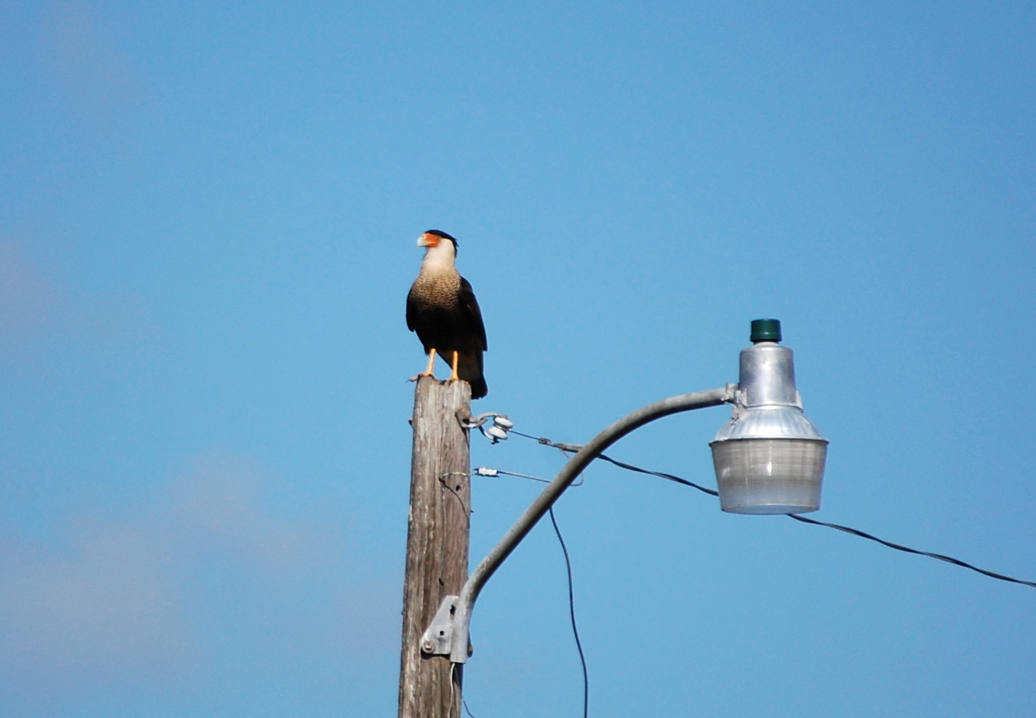 The caracara is a very unique bird. Some people struggle to put them in a category. Are they hawks? Are they eagles? Well, actually they are in the falcon family. What makes that especially interesting is the caracara is the only falcon that collects material and builds its own nests. All other falcons utilize existing nests that were abandoned by other species. Apparently caracaras are very picky about which items they will use. While I haven’t seen this myself, other biologists have told me they have observed them picking up several pieces of material, examining them, and discarding them before selecting just the right one.