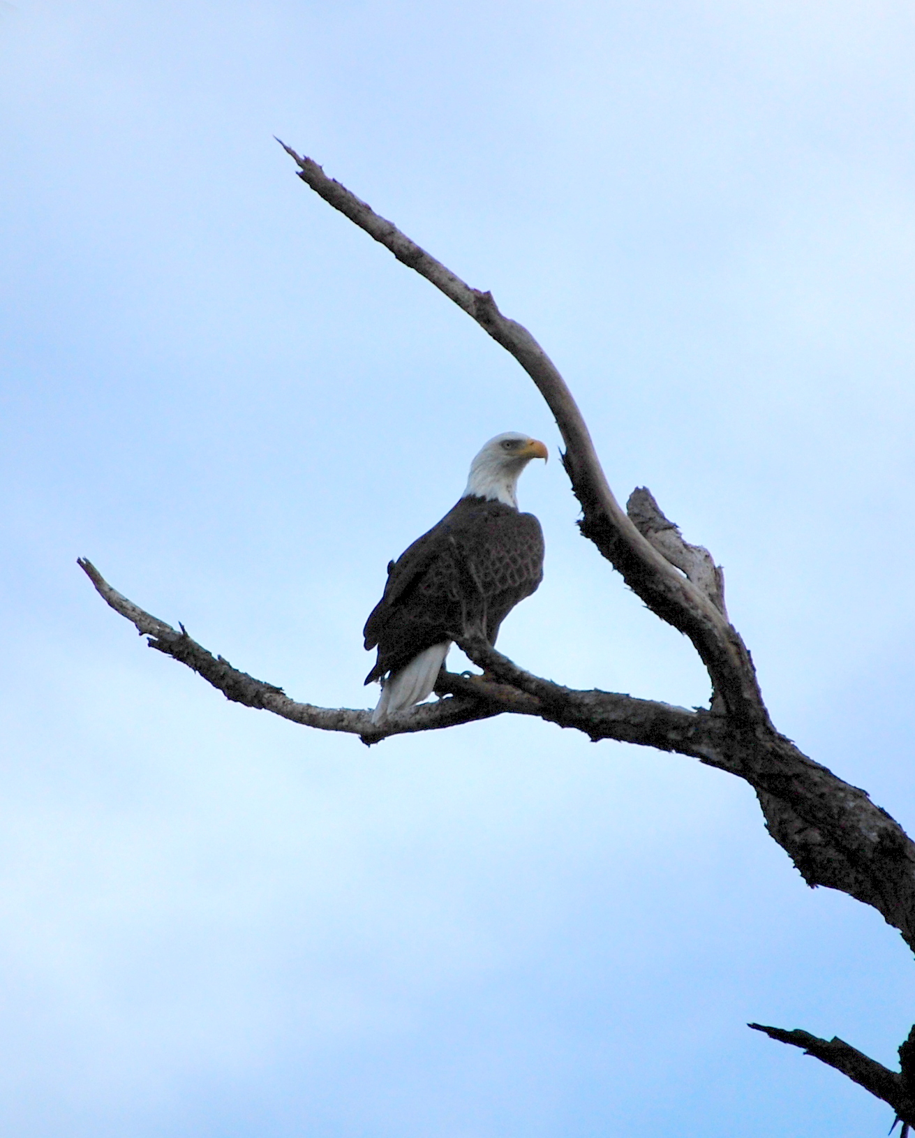 One final interesting thing about bald eagle is their nest fidelity. They will usually revisit the same next every season and tend to add more nesting material to it. Since they add to it every time, these nests can get very large. The Guinness Book of World Records lists a bald eagle nest as the largest bird nest in the world. It was found right here in St. Petersburg, FL. It was measured at 9 1/2 feet wide, 20 feet deep, and weighed nearly 4,500 pounds.