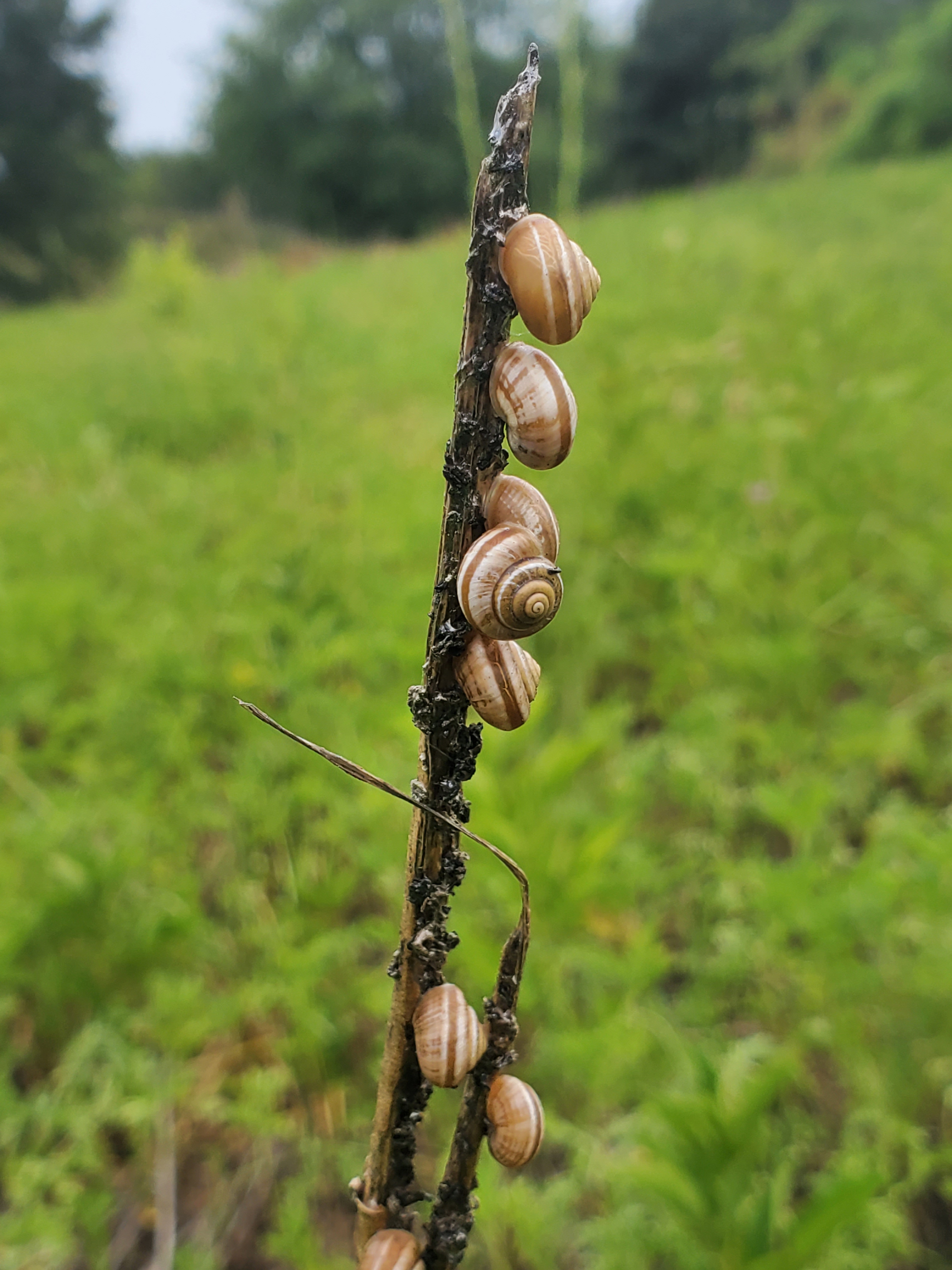 This last photo is an interesting phenomenon I see in the field quite often. Based on the white stripes, the size, and the fact they are in a large group, I guessed these to be vagrant scubsnails (Praticolella griseola). I couldn’t find anything on the genus name, but the species name comes from the Latin griseolus meaning “grey”. From what I’ve read, these snails have entered sort of a temporary hibernation due to lack of moisture. They’ve sealed their shell openings with a mucus membrane to maintain the moisture in their bodies. These were atop a rather tall stick, probably three of four feet off the ground. That part I haven’t been able to figure out yet. I understand them being up high so they don’t get trampled. But I don’t quite understand why they would benefit from being out in the open and vulnerable. If I learn more about that, I’ll be sure to do an update.