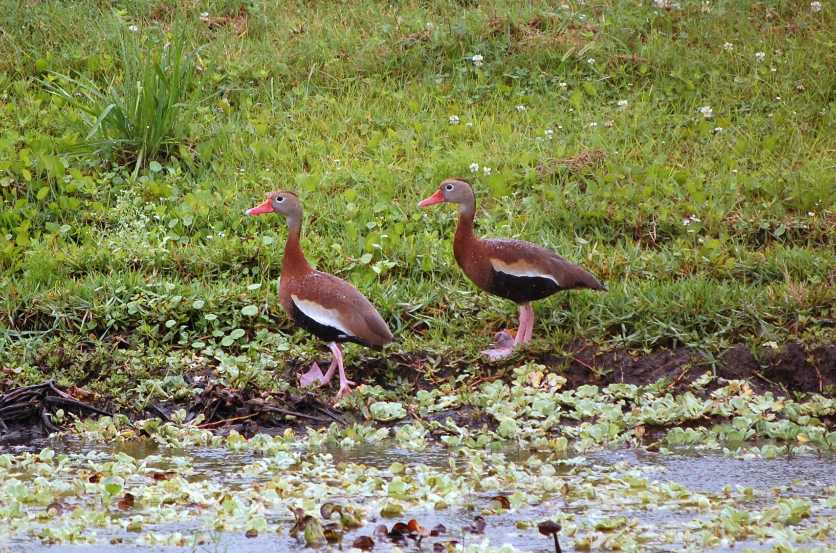 Moving on to some wetland birds that aren’t quite as common. First is a duck that, while visibly unique as well, can many times be identified for the unique call that gives them their name. This is the black-bellied whistling duck (Dendrocygna autumnalis). The genus is a combination of the Greek dendron meaning tree and cygnus meaning swan. Whistling ducks are one of a very few species of ducks that will actually perch in trees. There is also a trait that they have in common with swans – monogamy. Unlike other duck species, whistling duck pairs form very strong bonds. They also lack sexual dimorphism, another trait that they share with swans. The species name refers to the fact that these ducks would appear in the Autumn months in the area that they were initially described.