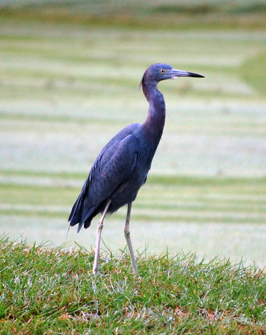 The little blue heron gets its species name from the Latin caeruleus meaning “blue”. As both the common and scientific names suggest, blue is the main color on this bird. In fact, it is the only color besides a hint of purple, in the right light, and black and grays. This is the main way that you can tell them apart from the tricolored heron. It is also something that may have saved the species during the “hat craze” of the early 1900’s. While other herons were being slaughtered for their showy feathers, the dark, drab colors of the little blue heron were considered not as attractive.