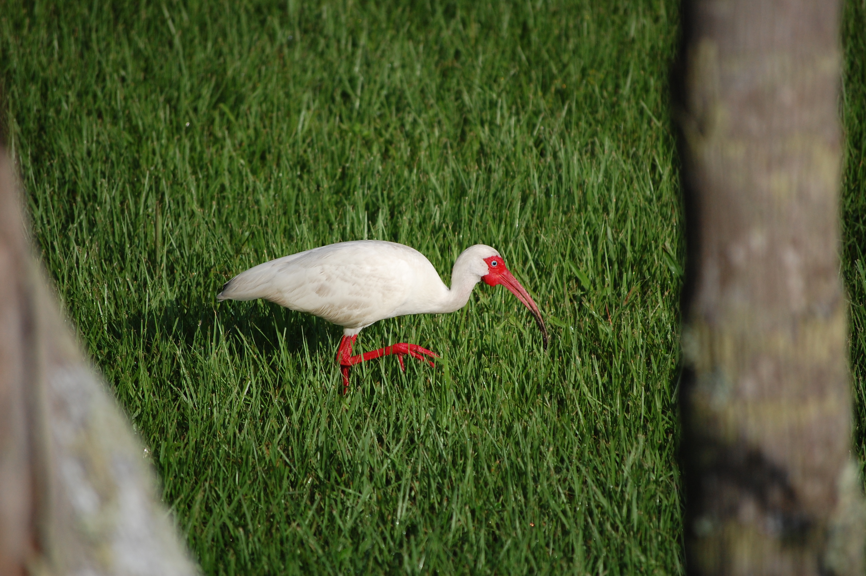 While they may not have the impressive plumage, white ibises are still very interesting birds. They have the distinctive curved beak, which they use to probe soil for insects, or probe through muck to catch crabs and crayfish. Many people think that the ends of their bills are dark. However, this is due to muck staining and not the actual bill color. When ibises are first born, their bills are straight. They don’t start curving downward until about 2 weeks old.