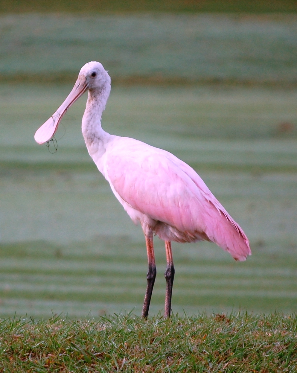 It turns out this bird has a few things in common with a couple of the other birds I’ve shared. First, like the ibis, the unique bill is not present upon hatching, but takes about a month to develop. Also, like the tricolor heron, there is a similarity in their development to that of humans, specifically men. As the spoonbill ages, it starts to bald, losing feathers on the top of the head. Something unlike the others, however, is their body position while foraging. I happened to take this photo when this bird had its head pointed downward. However, most of the time, you will see them in more of a horizontal position as their bill is more designed for scooping rather than probing. You can see how this one is opening the mouth to search through debris underwater. The diet is mainly minnows, plant debris, and crustaceans, which are what gives them the pink color, much like flamingos.