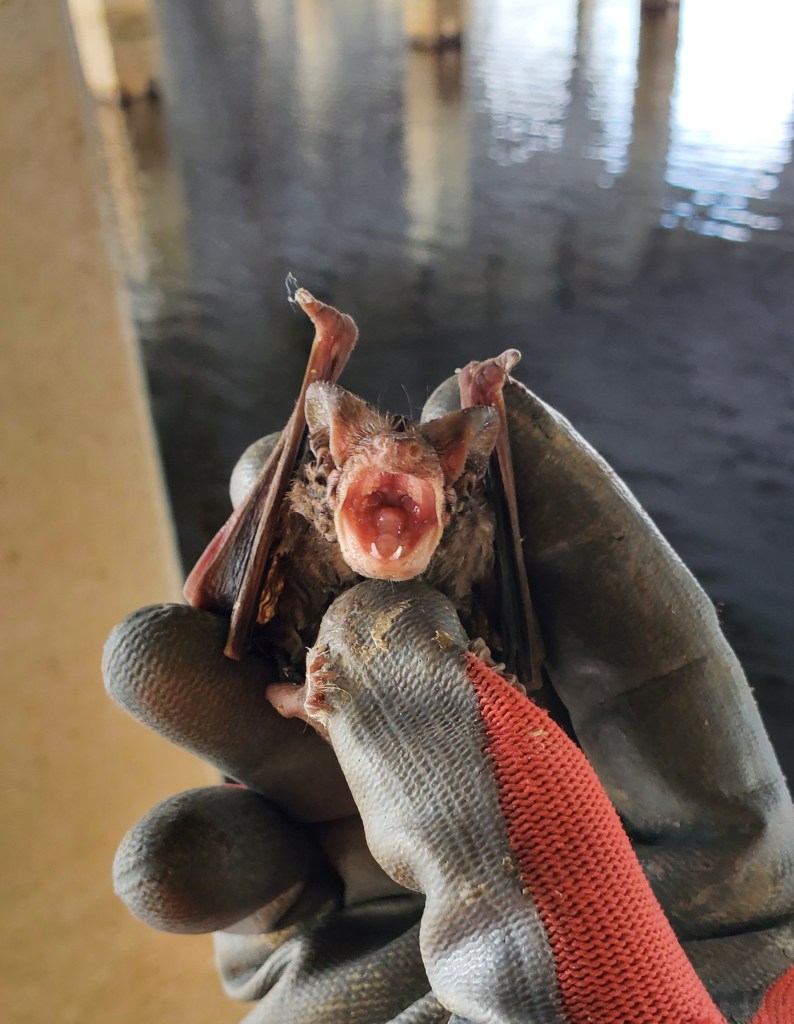 During a routine inspection of one of our bridge bat exclusions, which occurred when it was a bit colder than previously, we had the opportunity to not only see the behavior of the bats change based on the temperature, but also to hopefully help a couple of individuals we found along the way. I say “hopefully” because this wasn’t a rehabilitation attempt. We don’t know what happened after our actions. We can only hope for the best.