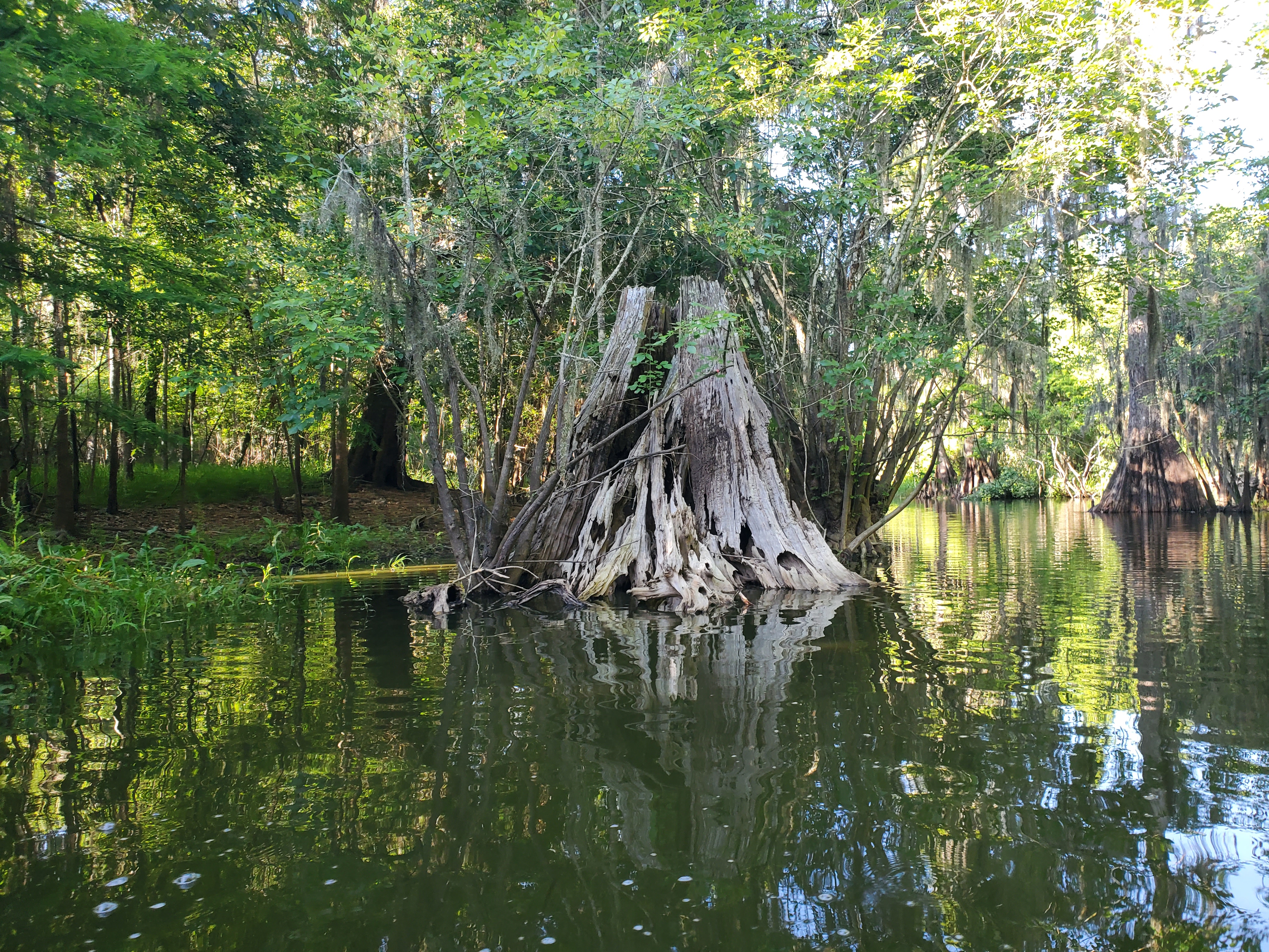 While the river is lined with plenty of these large, thriving trees, there are also remnants of the buttressed portions of trees that stood many years before. Seeing large living trees next to dead portions of equally large size, it is easy to see the rich natural history of this area.