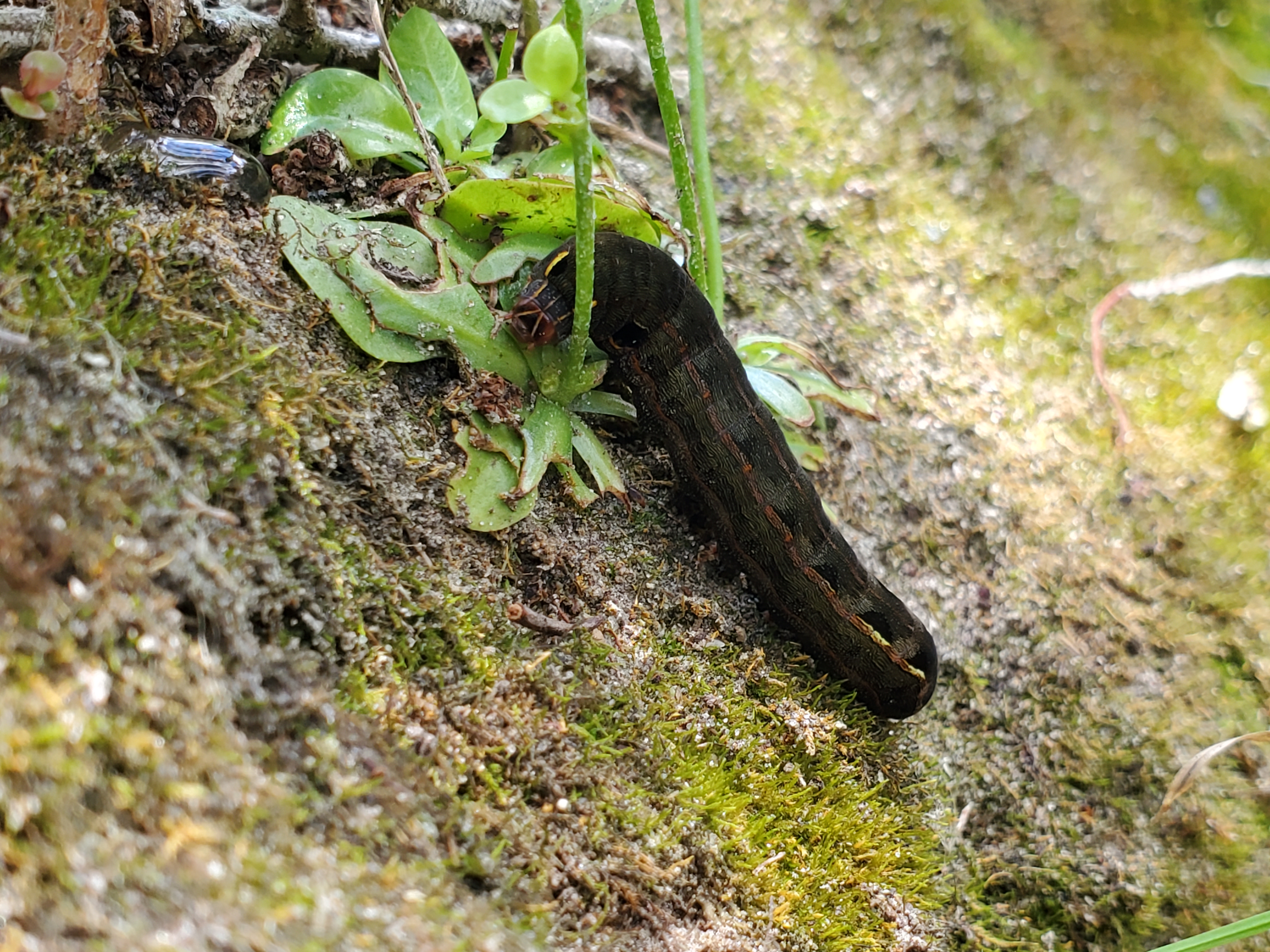 This next one was very odd for several reasons. I’ve seen lots of caterpillars, but never one of this dark green and brown color. I tried looking it up on my own and it was a dead end. I enlisted the help of my supervisor who is somewhat of an insect expert. Even she was stumped for a while but eventually came to the conclusion that this is likely the caterpillar of a large yellow underwing moth (Noctua pronuba).