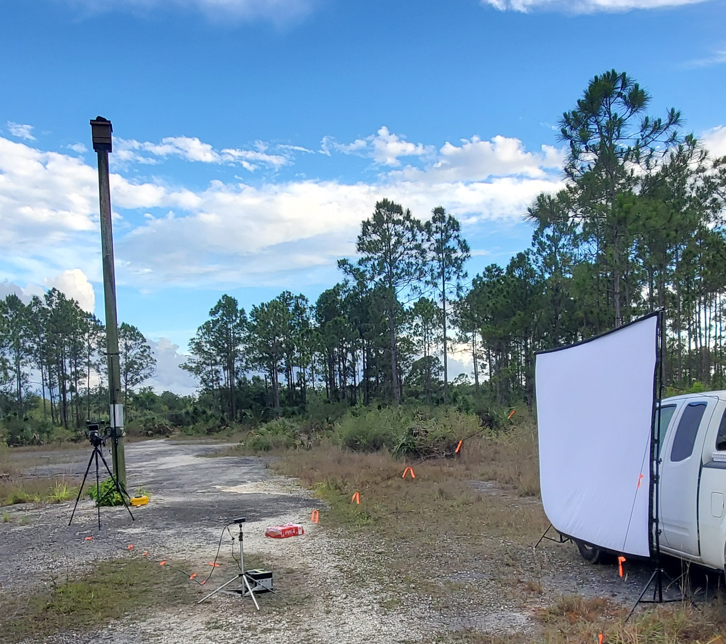 It’s the first day of June. It’s unseasonably cool for a south Florida evening this time of year. In front of us all is a tall pole with a small box affixed to the top. In front of that is a special camera wired to a projector showing a close-up of the box on a screen stretched over a work truck. A group of biologists are chatting amongst each other, all waiting for the sun to set. As dusk approaches, they are reminded to keep quiet so our guests are not startled from making an appearance. In near silence, we wait as the bugs begin to show. Standing for the better part of an hour and a half and swatting away the pests was not the easiest task. The anticipation made it feel like an eternity. Finally, some activity is noted, making it all worthwhile.