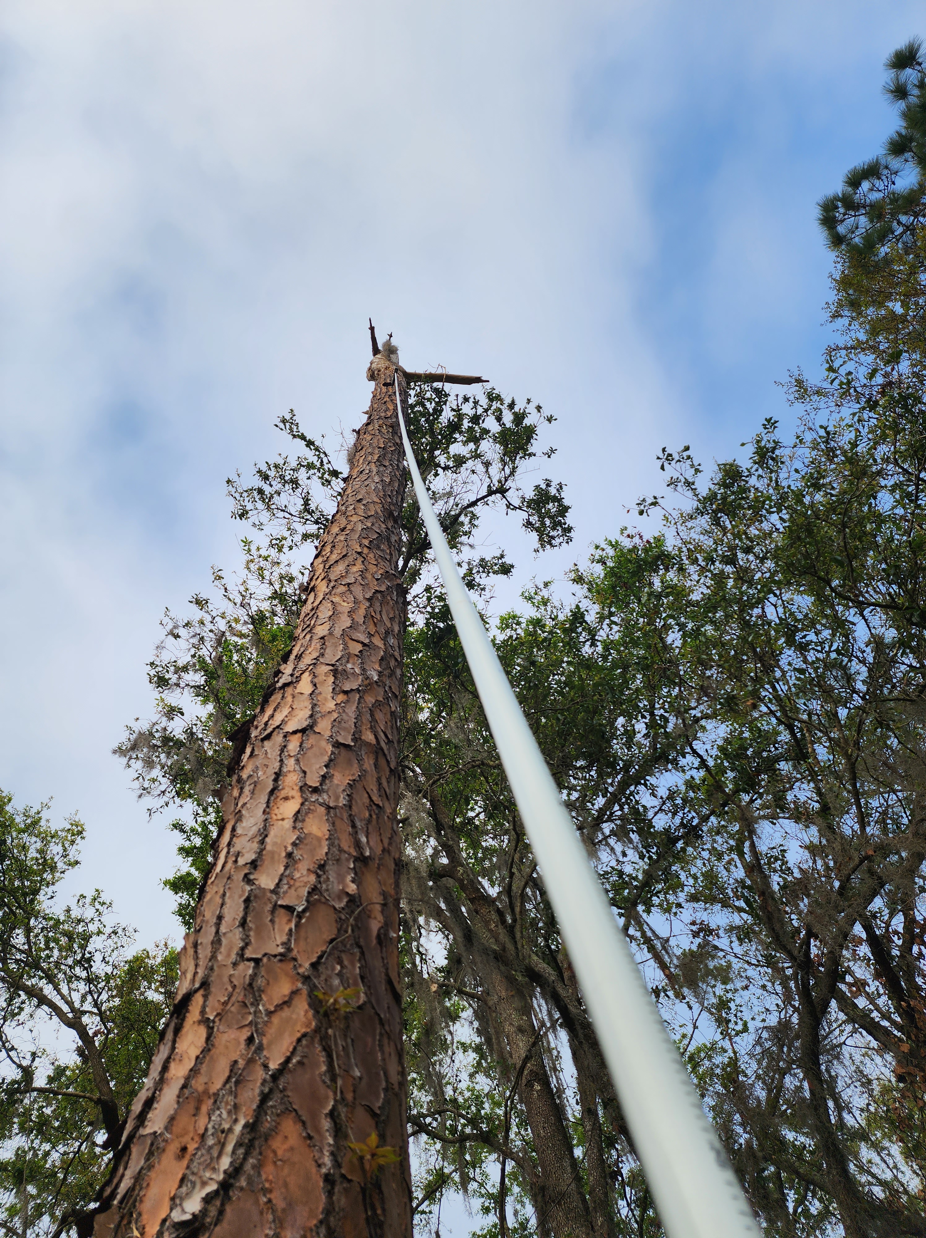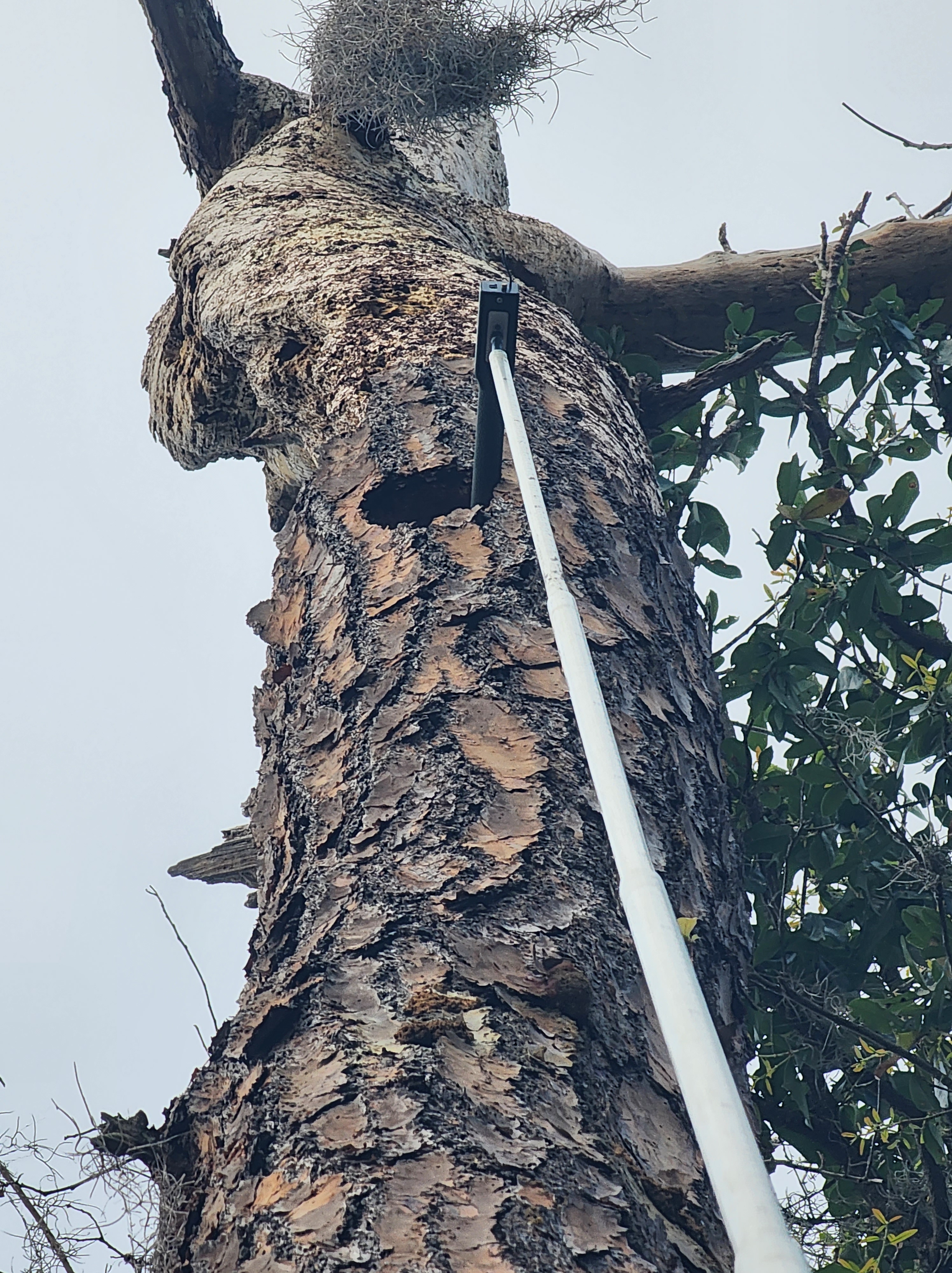 First, a little background on what we were doing to see these guys. The southeastern American kestrel (Falco sparverius paulus) is a state protected subspecies of the American kestrel (Falco sparverius). Since they are protected, it is important to survey for their presence when impacts to their habitat are expected. The subspecies is nearly impossible to differentiate from the others based on physical characteristics. Therefore, we have to survey during the time of year when the others have migrated north (March – September; surveys are done May – July). Surveys are done with what’s known as a “peeper cam”, a downward-facing camera on a telescoping pole. We check cavities in snags (dead trees) and timber power poles.