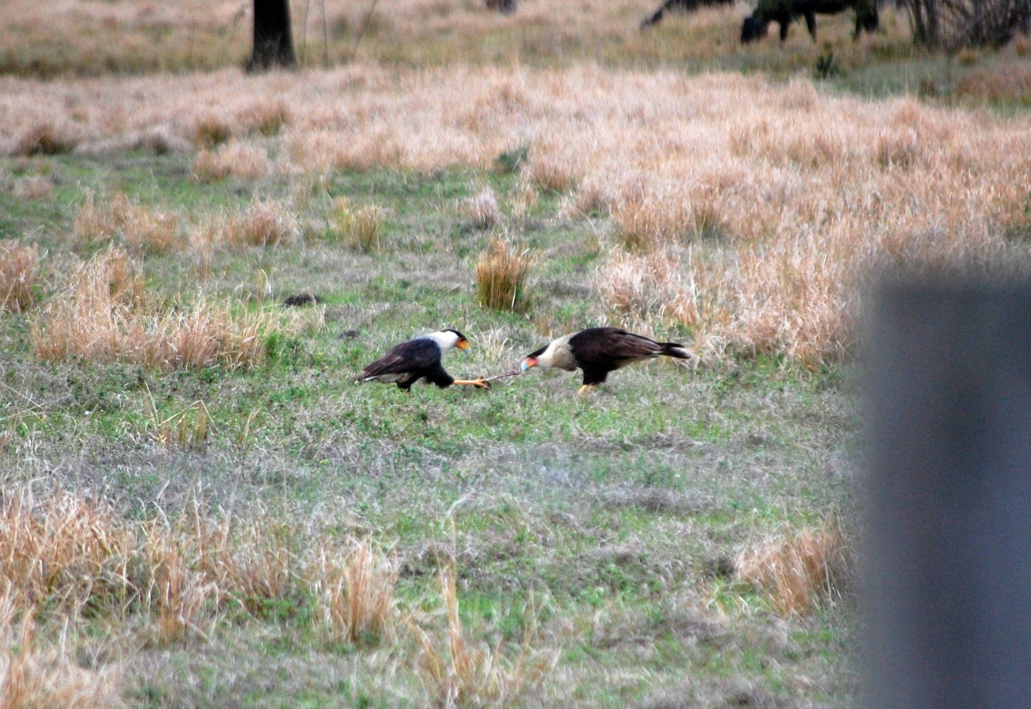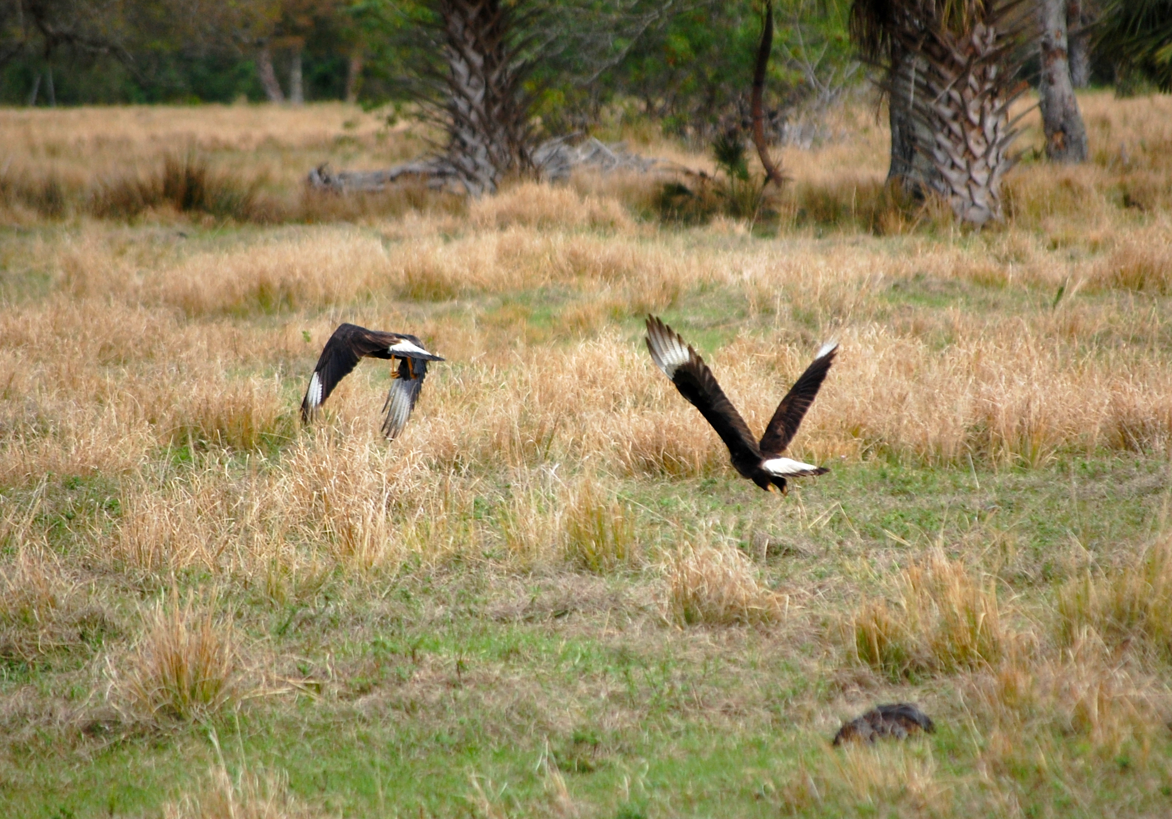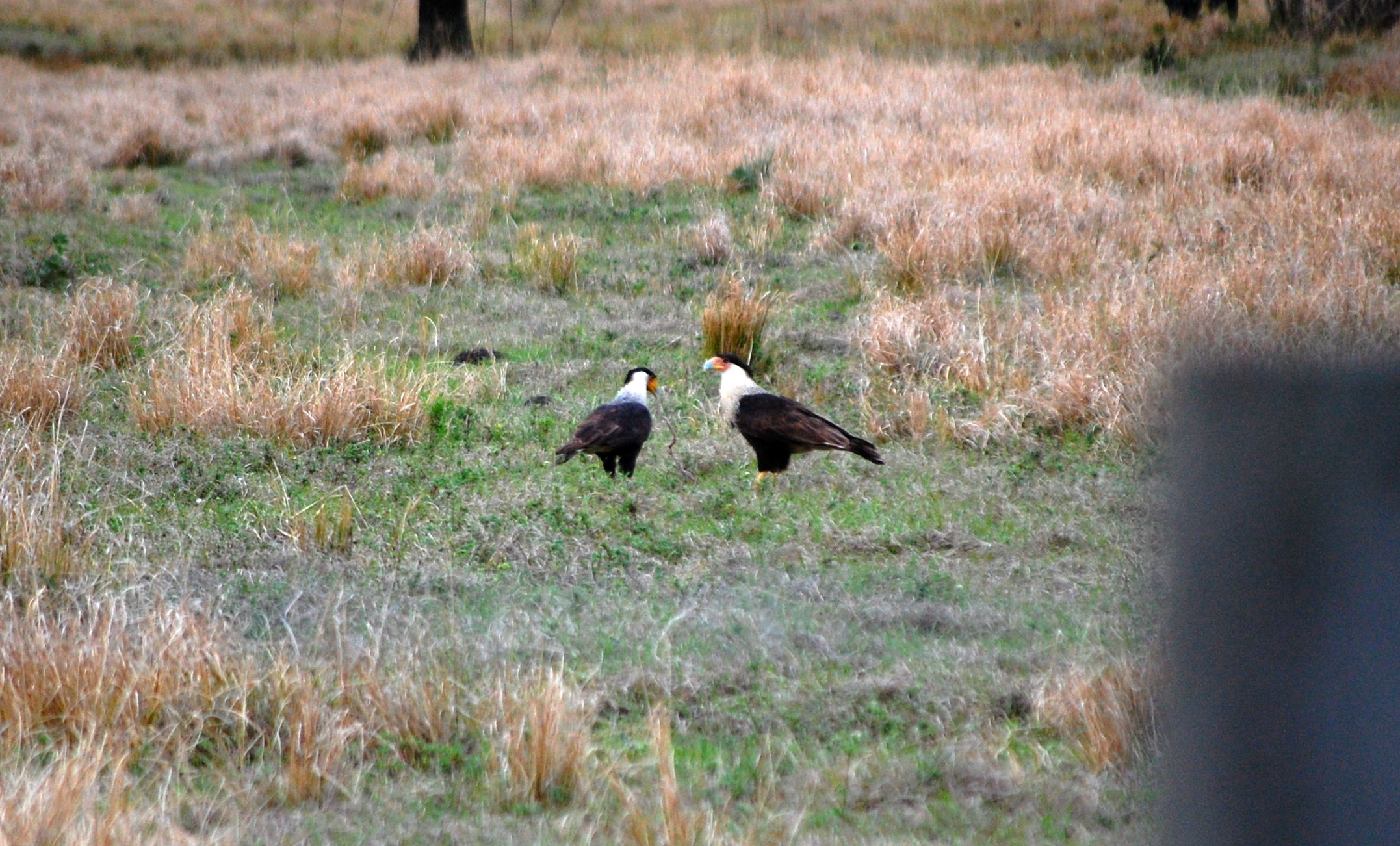 Another circumstance that led to this writing was some caracara monitoring that I did this week. We were monitoring a pair with a nest near a construction zone. We basically watch them throughout the day and record their behaviors, ensuring that the construction does not have an adverse effect on their breeding behavior. Clearly, this pair was not at all bothered by it. I’ll get a bit anthropomorphic during this post, something that I usually shy away from as a scientist, but something I also recognize can be useful for engaging people and helping them find a connection with this species. Caracara is a great species to parallel with humans when it comes to mating behaviors. They are monogamous, generally mate for life, and they share parental responsibilities (females tend to care for the young a little more, but both are involved with incubation, feeding, etc.).
