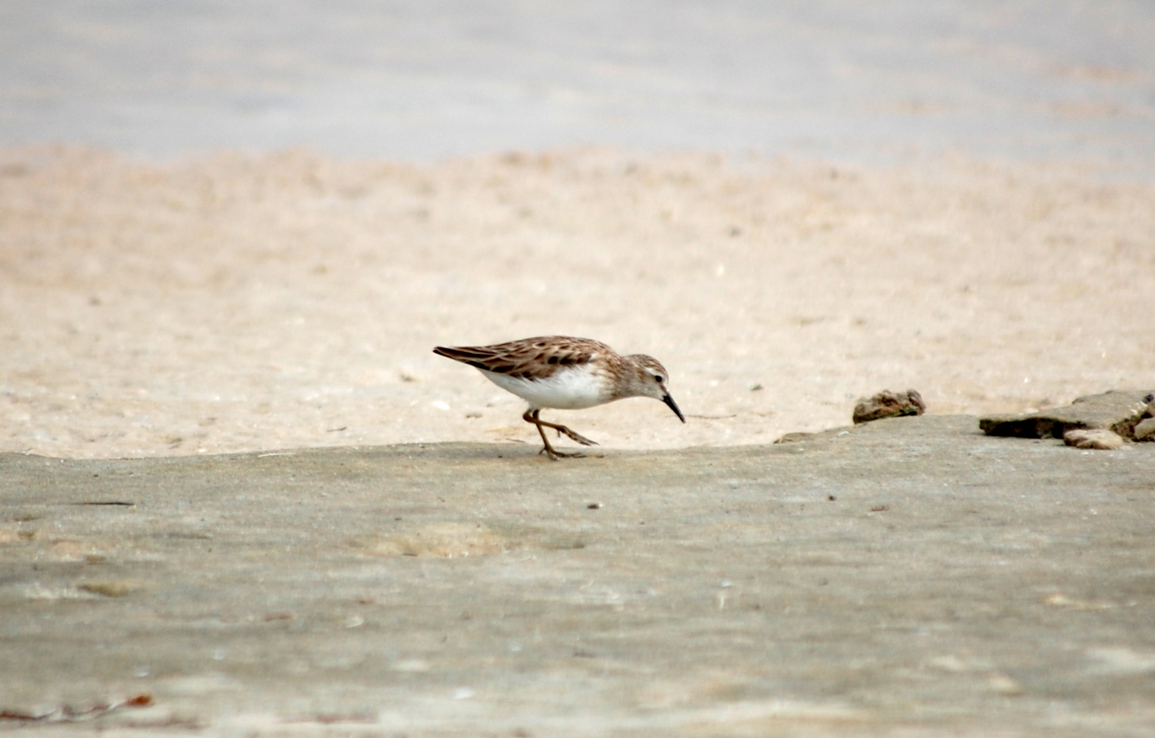 I mentioned that there was another one that could be difficult to tell from the least sandpiper and that’s the one pictured below. This is the western sandpiper (Calidris mauri). Again in the same genus, this bird’s species name is in honor the Italian botanist Ernesto Mauri. This one looks very similar to the least sandpiper, although it does have the black legs like the dunlin. There are some subtle differences in the bill also. However, the biggest difference here is the lack of brown in the neck and breast area.