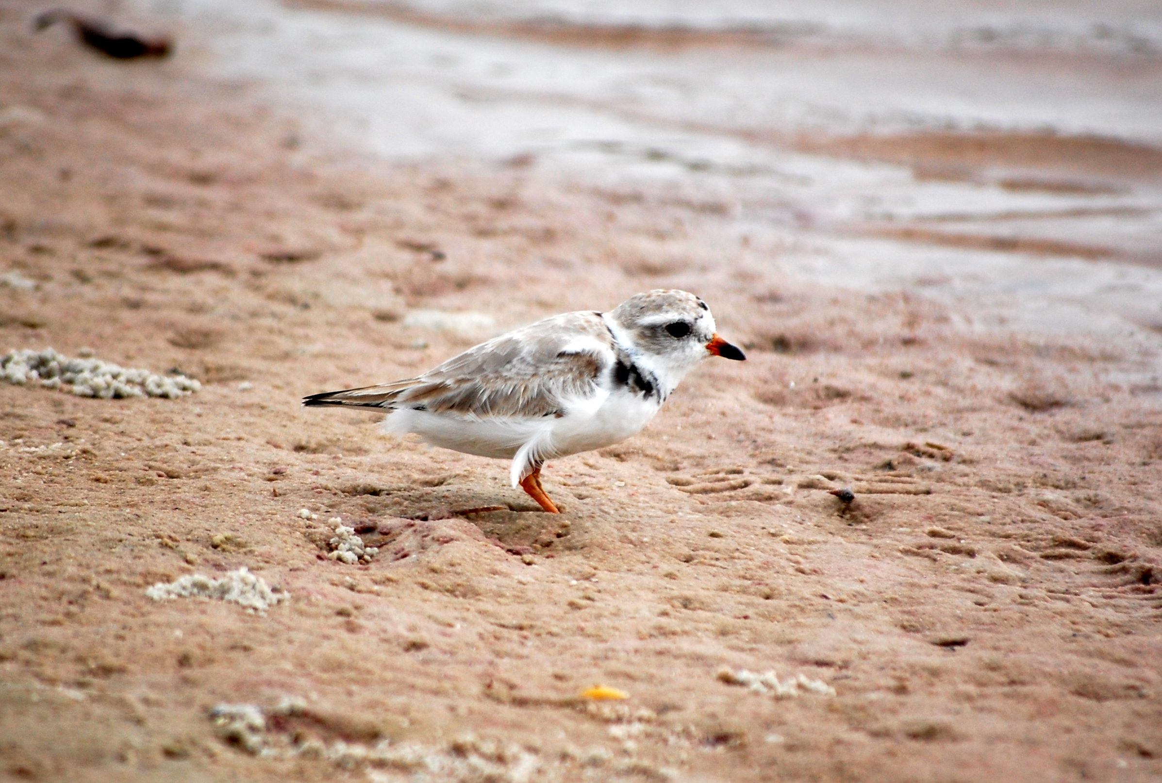 The next federally protected species is a good segway into another type of shorebird – the plovers. This one is known as the Wilson’s plover (Anarhynchus wilsonia). The genus is a combination of the Greek ana- meaning “backwards” and rhunkos meaning “bill”. The species (and common) name refers to Alexander Wilson, a Scottish naturalist who is considered the father of American ornithology and has several birds named after him. I’m not sure why the bill would be described as backwards, but it is the featured that easily distinguishes it from other plovers because it is much more robust.