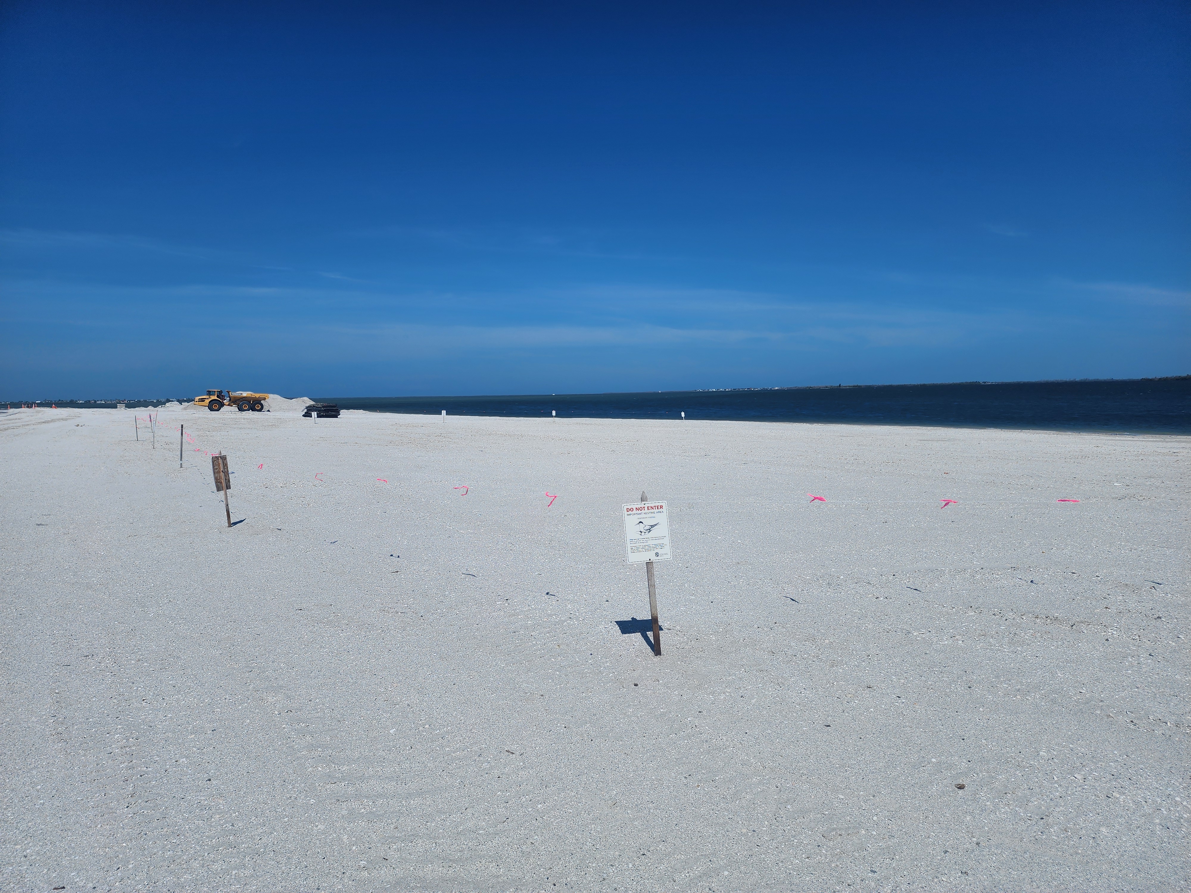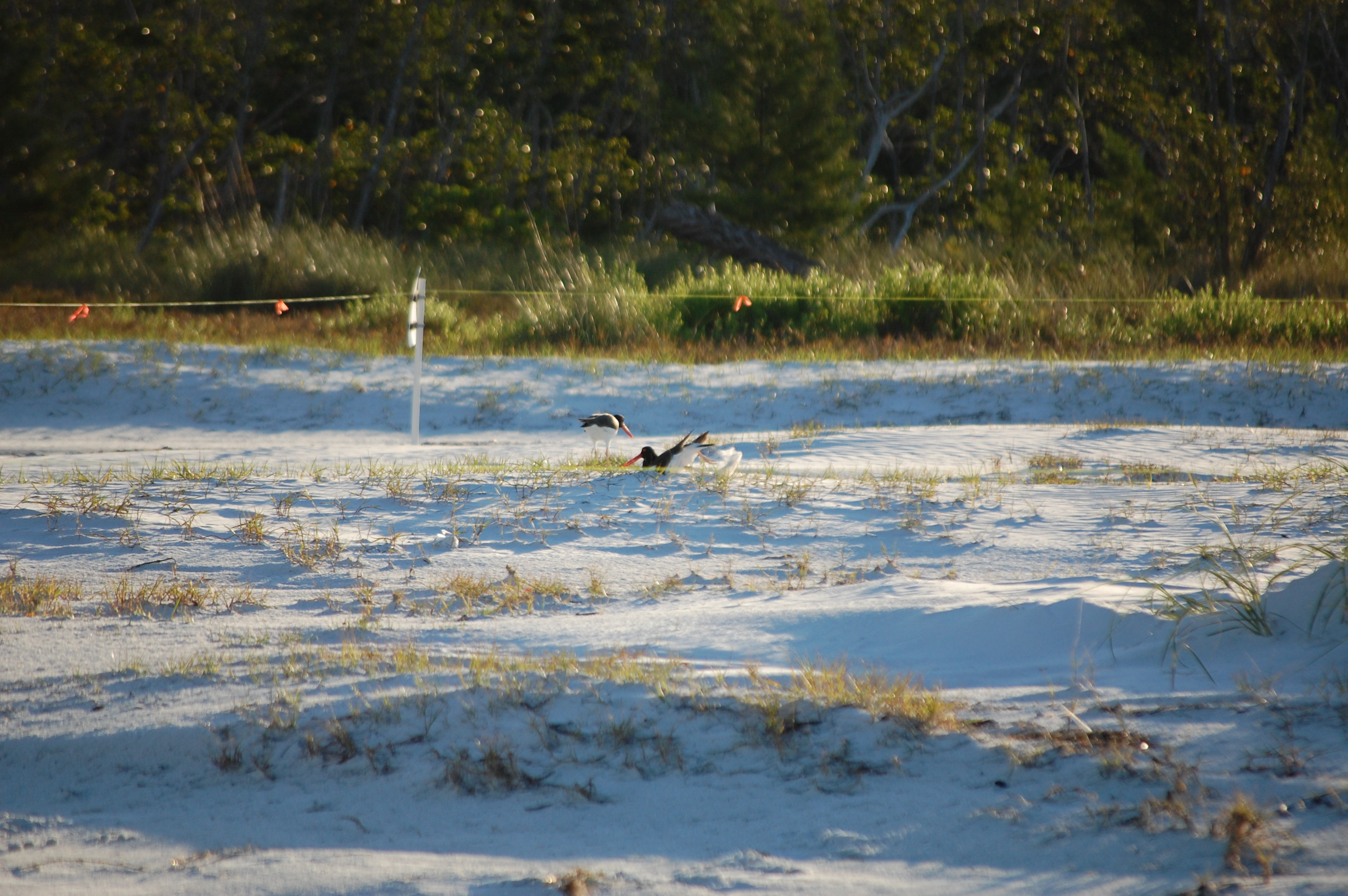 While there is a “typical” buffer around these areas, these birds were monitored first by the Florida Fish and Wildlife Conservation Commission (FWC) and they determined, based on their behavior, a minimum buffer so that the nearby construction could continue. Based on these recommendations, we provided signage and roped off the area. Since the birds are so small, they are hard to see in this photo, but they were everywhere, especially concentrated in the background.