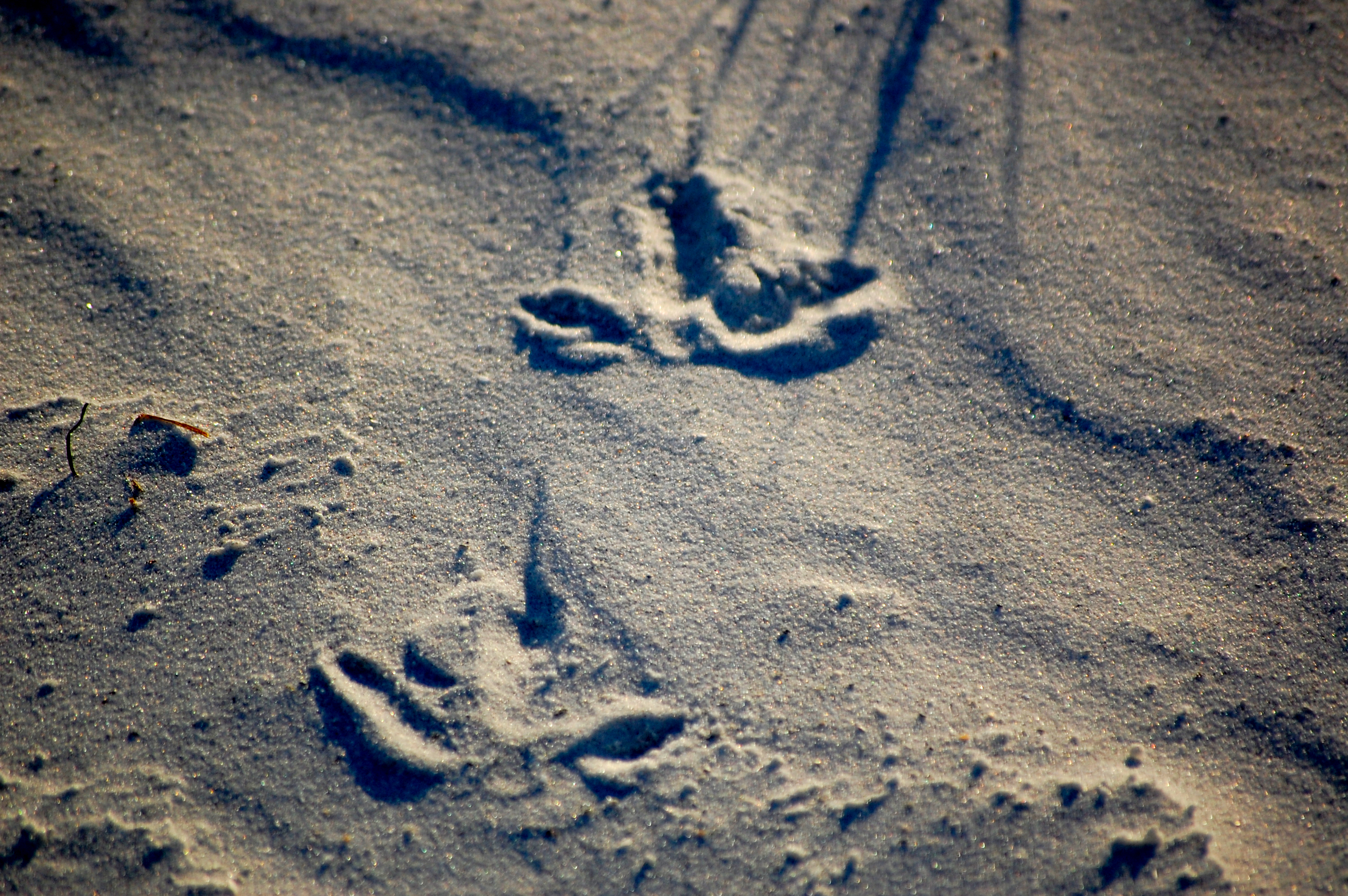 Eventually, they left the area, and we were able to get a closer look. This also illustrates how these nests are sometimes found by surveyors – through footprints. As long as people do the right thing and stay off of the dunes, they are generally a blank slate for all types of footprints. Oystercatchers, being rather large, leave a pretty obvious footprint, as you can see below. They tend to take a similar path when going to and from the nest, which gives us a sort of road map straight to it.