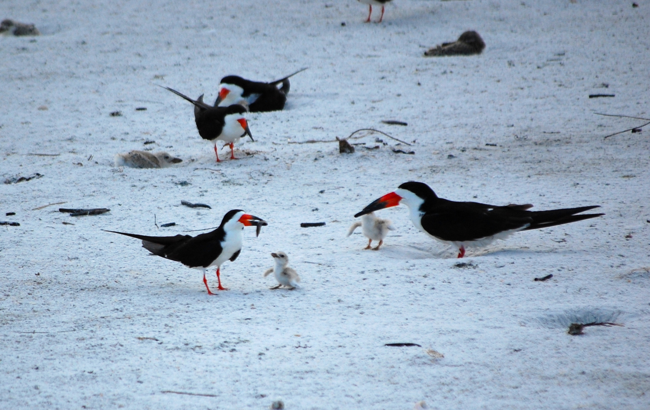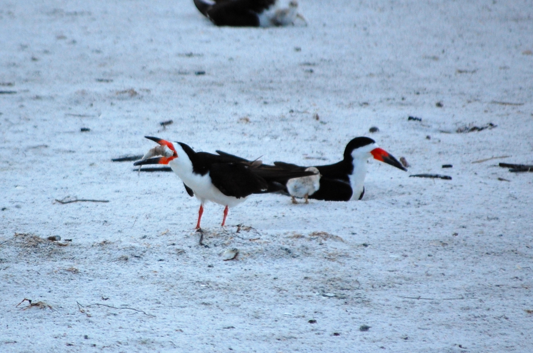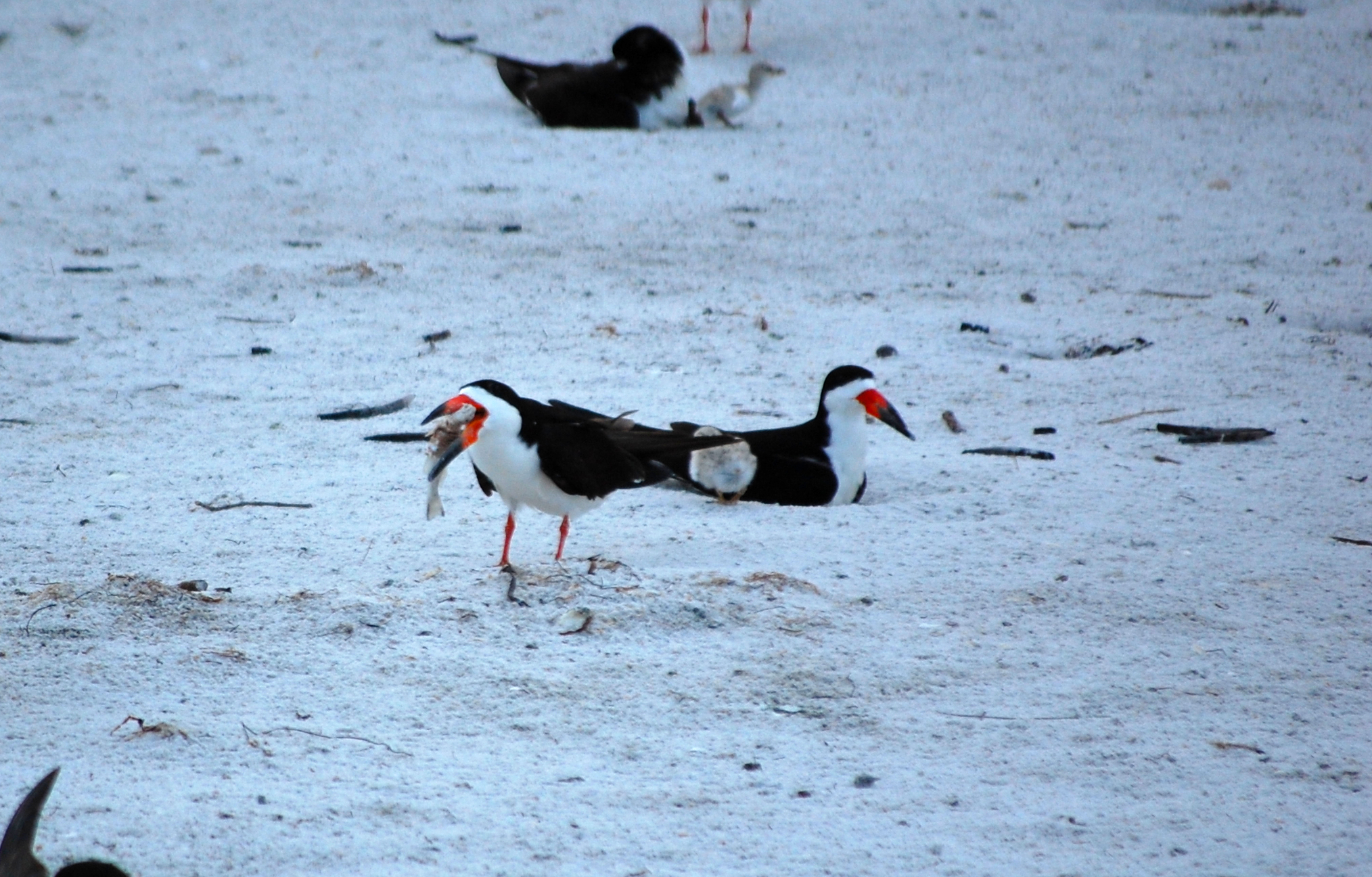 Of course, the adults have to eat, too. It was funny watching this. While they have a very streamlined means of foraging with the skimming, watching them eat what they catch is rather awkward.