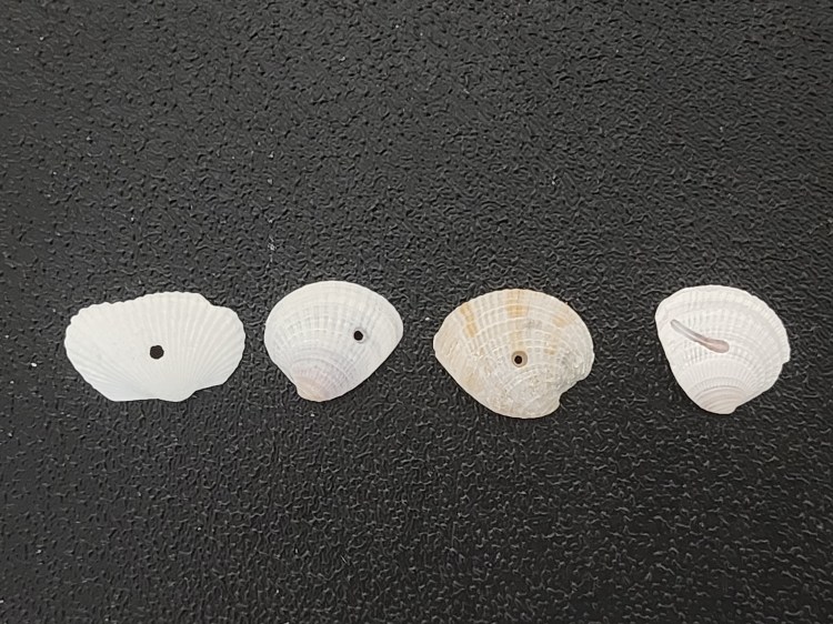 One final thing I’d like to point out which can make shelling even more interesting is how you can sometimes tell how the animal was preyed upon from clues on the shell. Below are four shells with different markings indicating what animal preyed upon them. The first three look similar but, upon closer inspection, are slightly different.