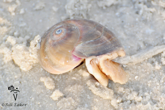 This indicates predation from a shark eye snail (Neverita duplicata).
