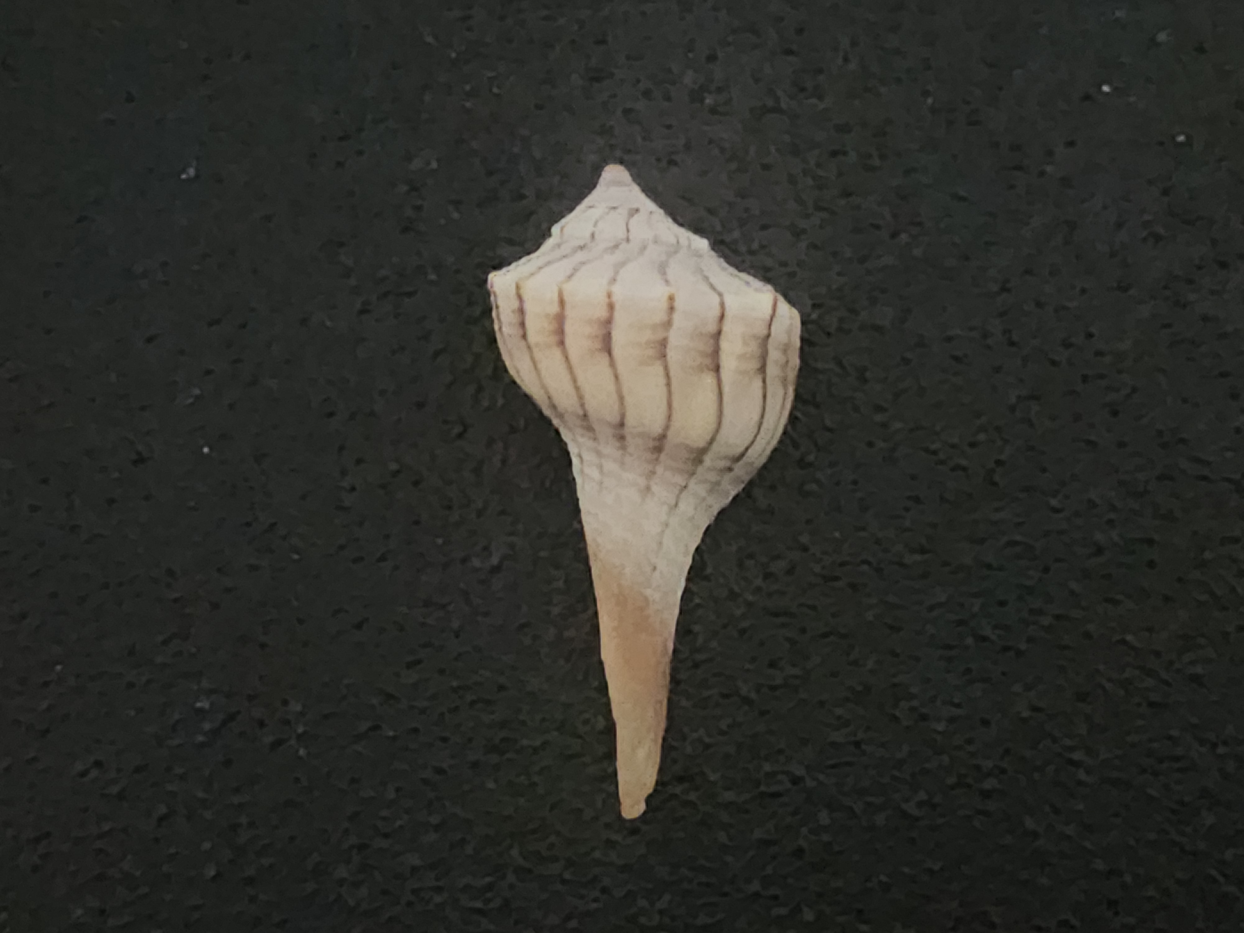 I saved my favorite for last. Again, I have yet to find a larger specimen since only broken fragments of those typically make it to shore. This is the shell of a lightning whelk (Sinistrofulgur sisistrum).
