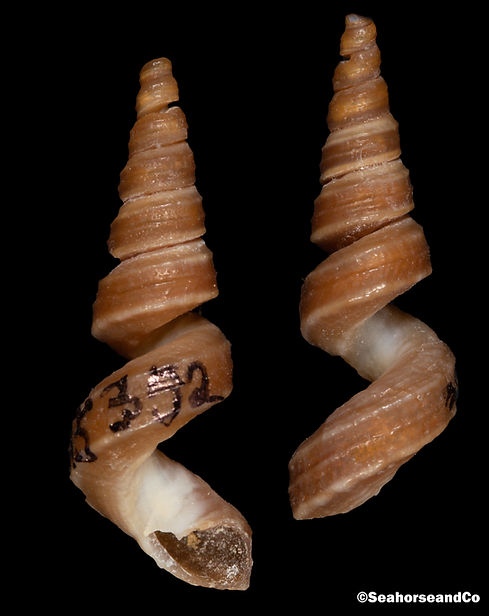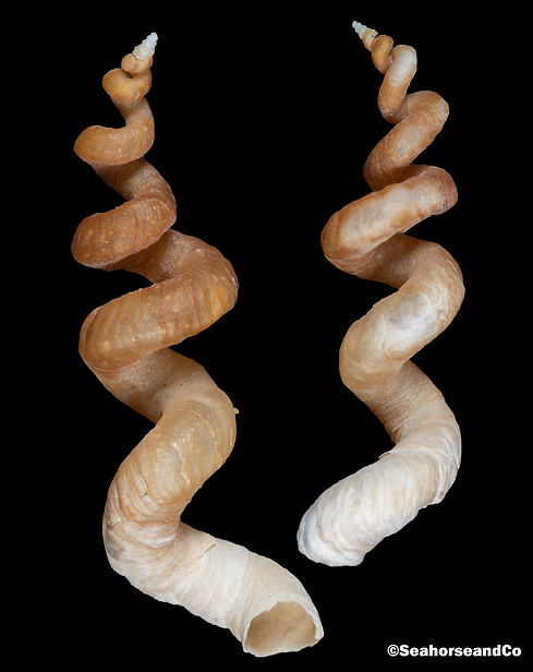 This next shell is quite small but has a beautiful, sturdy form (shout out to my intern, Kailanee, for finding this one for me!). This is the shell of an apple murex (Phyllonotus pomum). Despite the small size, murices are efficient predators, subduing their prey with a venom. This venom was also used by Phoenicians to make the dye tyrian purple. This venomous secretion also acts as an antimicrobial lining for the egg masses. These masses are a congregation of egg capsules from many females within a population.